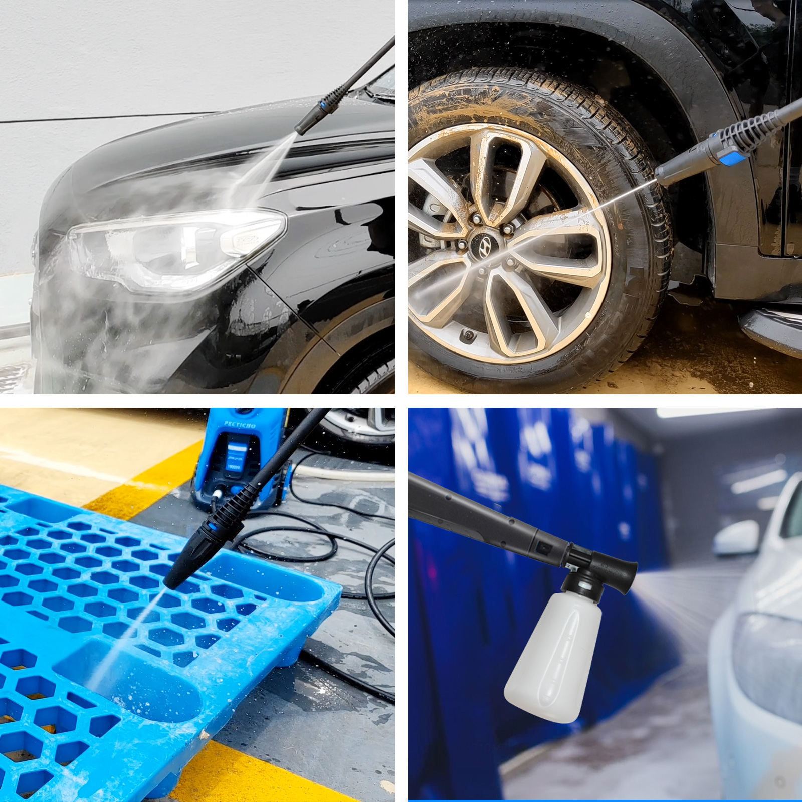 - [Wide Applications]: The electric pressure washers are ideal for quickly and easily removing dirt and dirt, such as cleaning decks, terraces, driveways, siding, sheds, cars, outdoor power equipment and so on. It will remove the dirt and moss in seconds, giving you the excellent cleaning experience. We pay great attention to customers’ shopping experience. If you have any questions, please feel free to contact us. We will reply quickly within 24 hours.