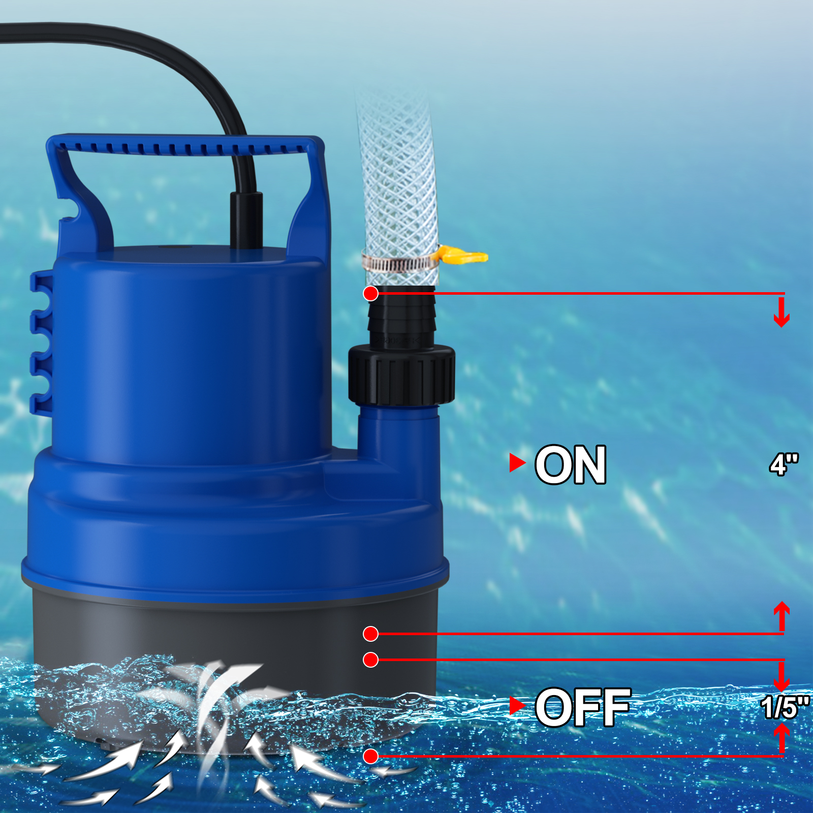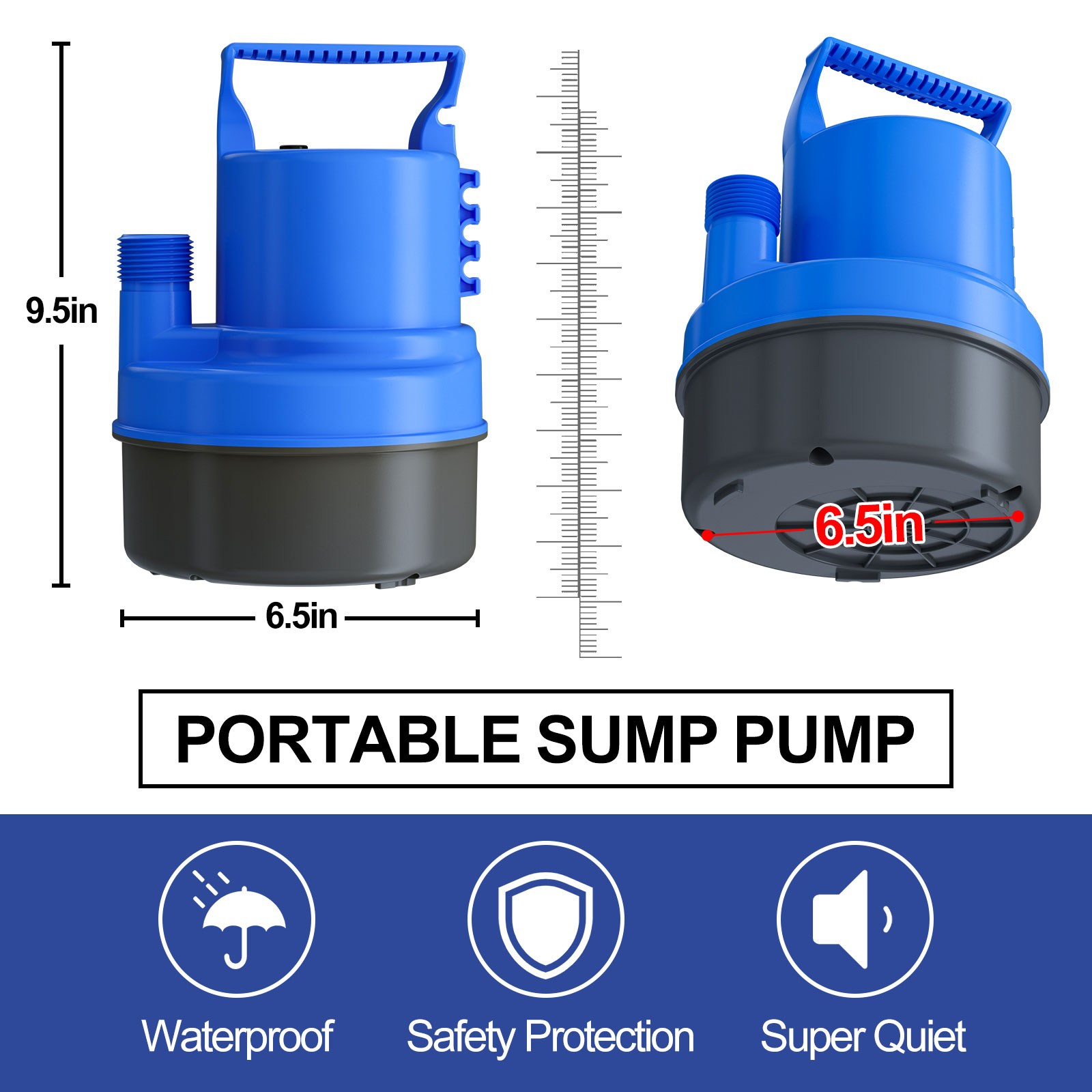 【Efficient Sump Pump】: The submersible pump is made of impact and corrosion resistant plastic. Built-in automatic thermal overload protector, which will protect the pump from overheat damage. High efficiency draining performance ensures its long service life, and it can be continuously used in drainage applications.