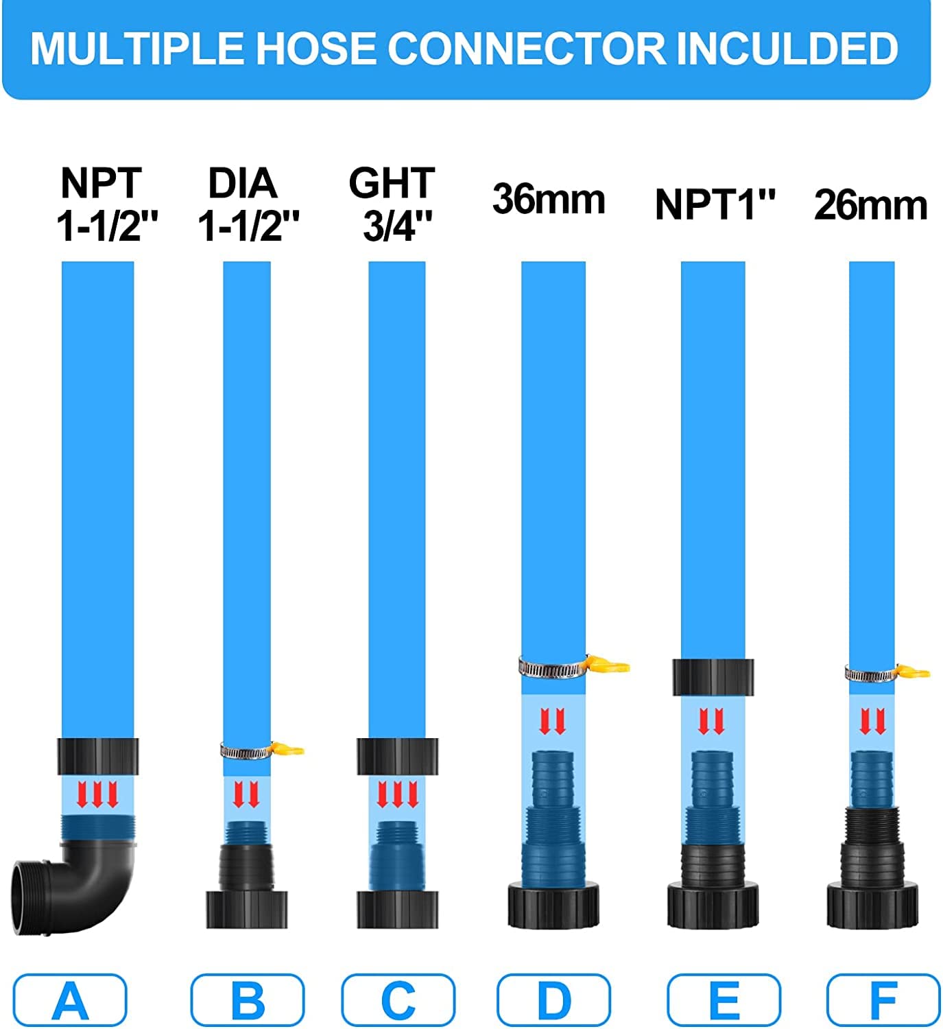 - 【Unique Design】: Unique water sensor switch with non-return valve drains water to the lowest suction level of 1/25inch without back flow. Designed for completely draining clean or slightly dirty water from flooded house, basement, sumps, window wells, water tanks, pools, cisterns, hot tub spas, and flooding in low lying areas.